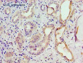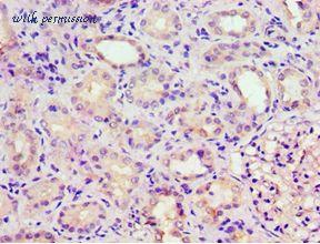 Immunohistochemistry of paraffin-embedded human kidney using antibody at 1:100 dilution.