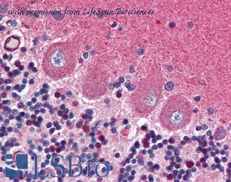 Anti-GRIA2 / GLUR2 antibody IHC of human brain, cerebellum. Immunohistochemistry of formalin-fixed, paraffin-embedded tissue after heat-induced antigen retrieval. Antibody dilution 1:50.