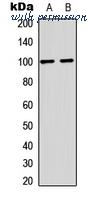 Western blot of GluR2 (Y873) pAb in extracts from HUVEC cells.