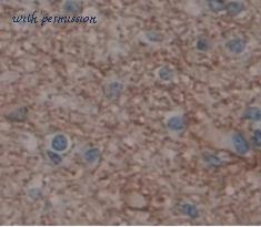 IHC of GluR2 (Y873) pAb in paraffin-embedded human brain tissue.