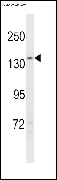 NPC1L1 Antibody western blot of 293 cell line lysates (35 ug/lane). The NPC1L1 antibody detected the NPC1L1 protein (arrow).