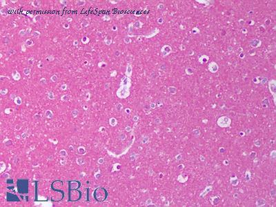 Anti-NRG1 antibody IHC of human brain, cortex. Immunohistochemistry of formalin-fixed, paraffin-embedded tissue after heat-induced antigen retrieval. Antibody concentration 5 ug/ml.