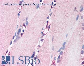 Anti-NRG1 antibody IHC of human skeletal muscle. Immunohistochemistry of formalin-fixed, paraffin-embedded tissue after heat-induced antigen retrieval.