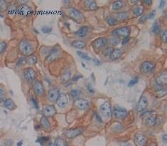 Formalin-fixed, paraffin-embedded human prostate carcinoma stained with peroxidase-conjugate and DAB chromogen. Note cytoplasmic staining of tumor cells. This image was taken for the unmodified form of this product. Other forms have not been tested.