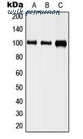 Sample (30 ug of whole cell lysate) A: 293T 7.5% SDS PAGE NRG1 antibody diluted at 1:2000
