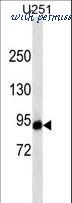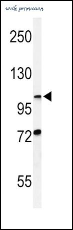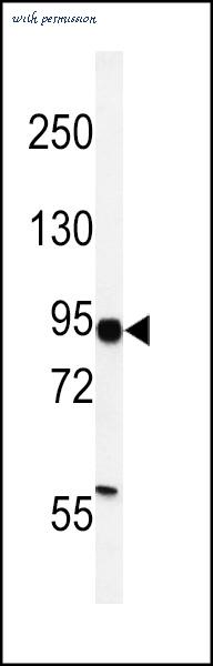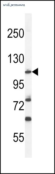 Western blot of HIF1Alpha Antibody in MDA-MB231 cell line lysates (35 ug/lane). HIF1Alpha (arrow) was detected using the purified antibody.