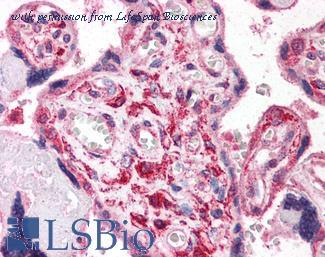 Anti-HIF1A antibody IHC of human placenta. Immunohistochemistry of formalin-fixed, paraffin-embedded tissue after heat-induced antigen retrieval. Antibody concentration 10 ug/ml. This image was taken for the unconjugated form of this product. Other forms have not been tested.