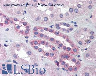 Anti-HIF1A antibody IHC of human kidney cortex. Immunohistochemistry of formalin-fixed, paraffin-embedded tissue after heat-induced antigen retrieval. Antibody concentration 25 ug/ml. This image was taken for the unconjugated form of this product. Other forms have not been tested.