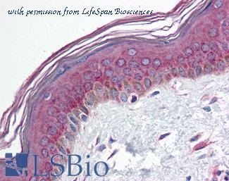 Anti-HIF1A antibody IHC of human skin. Immunohistochemistry of formalin-fixed, paraffin-embedded tissue after heat-induced antigen retrieval. Antibody concentration 10 ug/ml. This image was taken for the unconjugated form of this product. Other forms have not been tested.