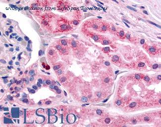 Anti-HIF1A antibody IHC of human kidney cortex. Immunohistochemistry of formalin-fixed, paraffin-embedded tissue after heat-induced antigen retrieval. Antibody concentration 10 ug/ml. This image was taken for the unconjugated form of this product. Other forms have not been tested.