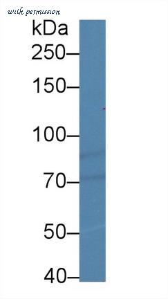 Western Blot; Sample: Human Hela cell lysate; Primary Ab: 2µg/ml Rabbit Anti-Gallus HIF1a Antibody Second Ab: 0.2µg/mL HRP-Linked Caprine Anti-Rabbit IgG Polyclonal Antibody