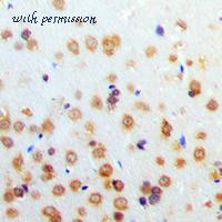 IHC of HIF-1 (K377) pAb in paraffin-embedded human brain tissue.
