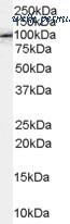 APBB1 / FE65 antibody (0.1µg/ml) staining of NIH/3T3 lysate (35µg protein in RIPA buffer). Detected by chemiluminescence.