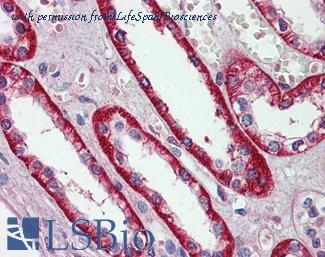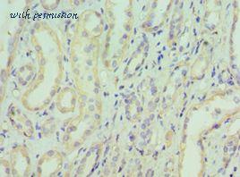 Immunohistochemistry of paraffin-embedded human kidney using antibody at 1:100 dilution.