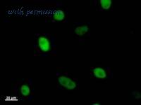 Immunostaining analysis in HeLa cells. HeLa cells were fixed with 4% paraformaldehyde and permeabilized with 0.1% Triton X-100 in PBS. The cells were immunostained with anti-KIF22 mAb.