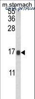 Western blot of LGALS2 Antibody in mouse stomach tissue lysates (35 ug/lane). LGALS2 (arrow) was detected using the purified antibody.
