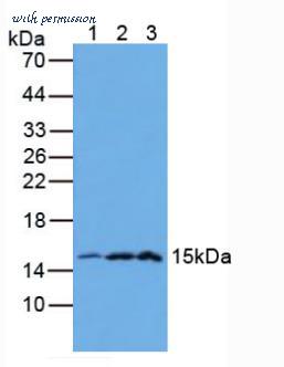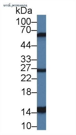 Western Blot; Sample: Lane1: Mouse Pancreas Tissue; Lane2: Mouse Intestine Tissue; Lane3: Mouse Stomach Tissue.