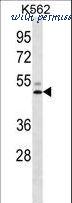 LIPC Antibody western blot of K562 cell line lysates (35 ug/lane). The LIPC antibody detected the LIPC protein (arrow).