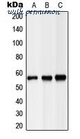 Western blot analysis of Hepatic Lipase expression in HEK293T (A); NIH3T3 (B); H9C2 (C) whole cell lysates.