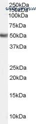 FADS1 antibody (0.3µg/ml) staining of Human Lung lysate (35µg protein in RIPA buffer). Primary incubation was 1 hour. Detected by chemiluminescence.