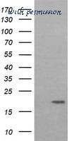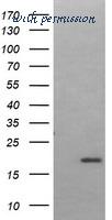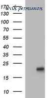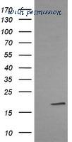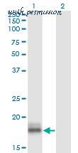 Western Blot analysis of LMO2 expression in transfected 293T cell line by LMO2 monoclonal antibody (M01), clone 6B8.Lane 1: LMO2 transfected lysate(18.4 KDa).Lane 2: Non-transfected lysate.