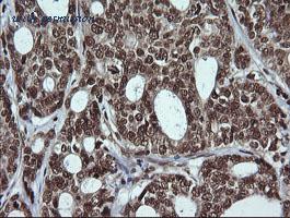 IHC of paraffin-embedded Adenocarcinoma of Human breast tissue using anti-LMO2 mouse monoclonal antibody.