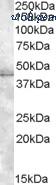 Antibody (1 ug/ml) staining of HeLa lysate (35 ug protein in RIPA buffer). Primary incubation was 1 hour. Detected by chemiluminescence