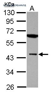 Sample (30 ug of whole cell lysate) A: U87-MG 10% SDS PAGE MBNL1 antibody diluted at 1:1000