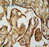 MPP1 Antibody immunohistochemistry of formalin-fixed and paraffin-embedded human placenta tissue followed by peroxidase-conjugated secondary antibody and DAB staining.