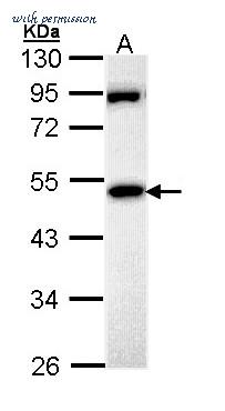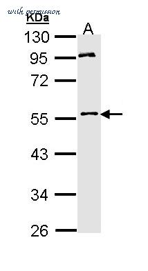Sample (30 ug of whole cell lysate). A: Hela. 10% SDS PAGE. MPP1 antibody diluted at 1:1000.