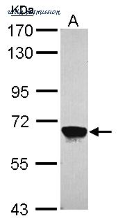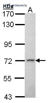 Sample (30 ug of whole cell lysate). A: A549. 7.5% SDS PAGE. MPP2 antibody diluted at 1:1000.