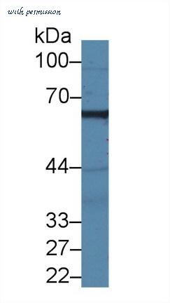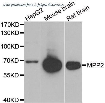 Western Blot; Sample: Porcine Cerebrum lysate; Primary Ab: 2µg/ml Rabbit Anti-Human MPP2 Antibody Second Ab: 0.2µg/mL HRP-Linked Caprine Anti-Rabbit IgG Polyclonal Antibody
