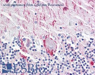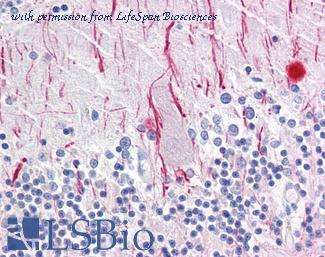 Anti-NEFH antibody IHC of human brain, cerebellum. Immunohistochemistry of formalin-fixed, paraffin-embedded tissue after heat-induced antigen retrieval. Antibody concentration 10 ug/ml.