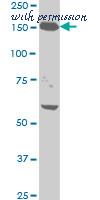 NEFH monoclonal antibody (M01), clone 2E8 Western Blot analysis of NEFH expression in HeLa.