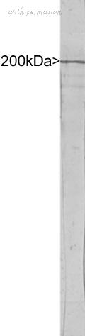 Blot of rat spinal cord extract blotted with NEFH / NF-H antibody. A major band running at 200kDa is NF-H, the major neurofilament subunit protein. A minor band at about 160kDa is the non-phosphorylated dendritic and perilaryal form of this protein.