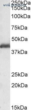PAFAH1B1 / LIS1 antibody (0.1µg/ml) staining of Rat Ovary lysate (35µg protein in RIPA buffer). Primary incubation was 1 hour. Detected by chemiluminescence.