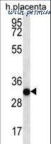 COPS7A Antibody western blot of human placenta tissue lysates (35 ug/lane). The COPS7A antibody detected the COPS7A protein (arrow).