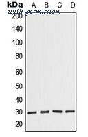 Western blot analysis of COPS7A expression in JAR (A); HeLa (B); Raw264.7 (C); PC12 (D) whole cell lysates.