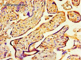 Immunohistochemistry of paraffin-embedded human placenta tissue using CSB-PA8880068HA01HU at 1:100 dilution. This image was taken for the unconjugated form of this product. Other forms have not been tested.