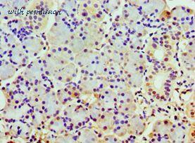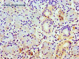 Immunohistochemistry of paraffin-embedded human pancreas tissue using antibody at 1:100 dilution.