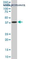 PCYT1A monoclonal antibody (M02), clone 6E6. Western blot of PCYT1A expression in PC-12.