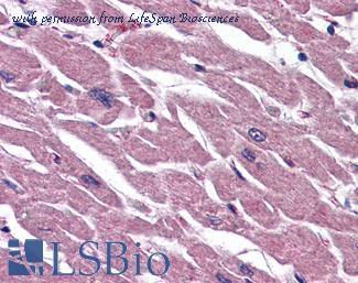Anti-UIMC1 / RAP80 antibody IHC of human heart. Immunohistochemistry of formalin-fixed, paraffin-embedded tissue after heat-induced antigen retrieval. Antibody concentration 5 ug/ml.