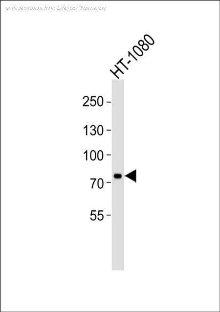 Western blot of lysate from HT-1080 cell line with UIMC1 Antibody. Antibody was diluted at 1:1000. A goat anti-rabbit IgG H&L (HRP) at 1:5000 dilution was used as the secondary antibody. Lysate at 35 ug.