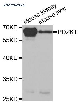 PDZK1 monoclonal antibody LS-b6114. Western blot of PDZK1 expression in human kidney.