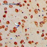 Immunofluorescence of ERAP1 in mouse brain tissue with ERAP1 antibody at 20 ug/ml.