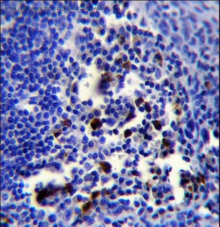 Anti-POU2AF1 / BOB1 antibody IHC of human spleen. Immunohistochemistry of formalin-fixed, paraffin-embedded tissue after heat-induced antigen retrieval. Antibody dilution 3.75 ug/ml.