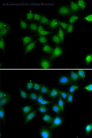 Immunofluorescence analysis of HeLa cells.
