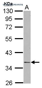 Sample (30 ug of whole cell lysate) A: IMR32 10% SDS PAGE NDE1 antibody diluted at 1:500