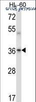 Mouse Prkaca/Prkacb Antibody western blot of HL-60 cell line lysates (35 ug/lane). The Prkaca/Prkacb antibody detected the Prkaca/Prkacb protein (arrow).