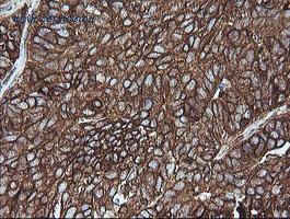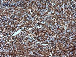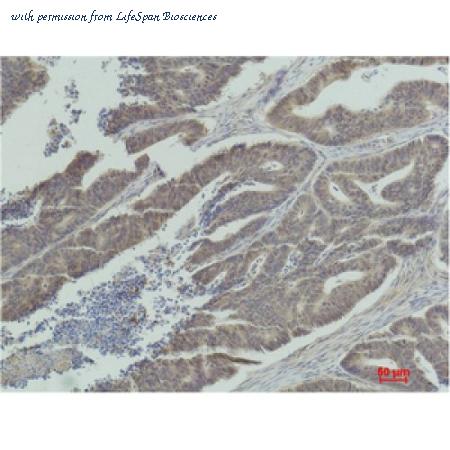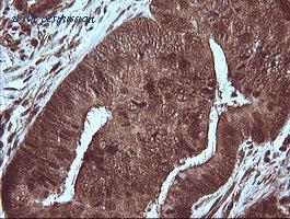 IHC of paraffin-embedded Adenocarcinoma of Human colon tissue using anti-MAP2K1 mouse monoclonal antibody. (Heat-induced epitope retrieval by 10mM citric buffer, pH6.0, 120°C for 3min).
